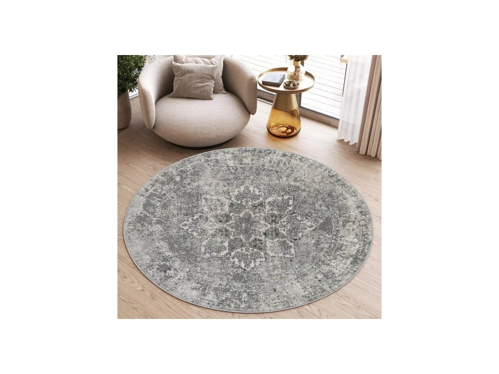 Kulatý koberec VALLEY D167A Klasický vzor šedý
