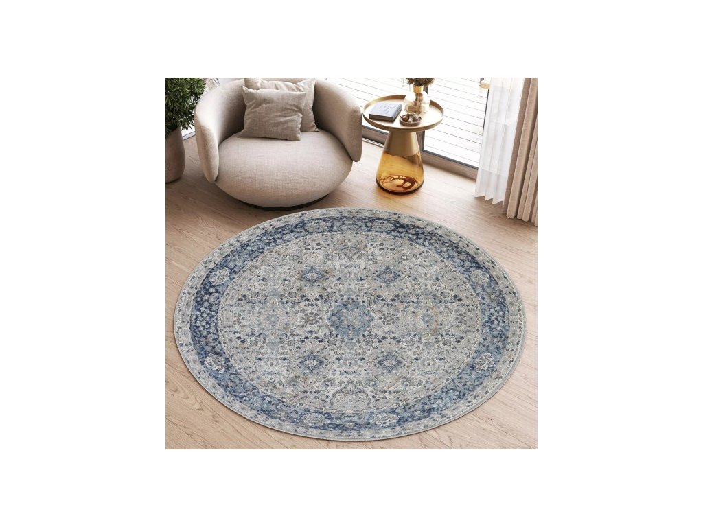 Kulatý koberec VALLEY D713B Klasický modrý bílý