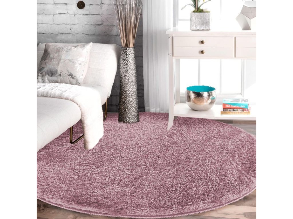 Kulatý koberec vhodný k praní jednobarevný Kamel - pink růžový