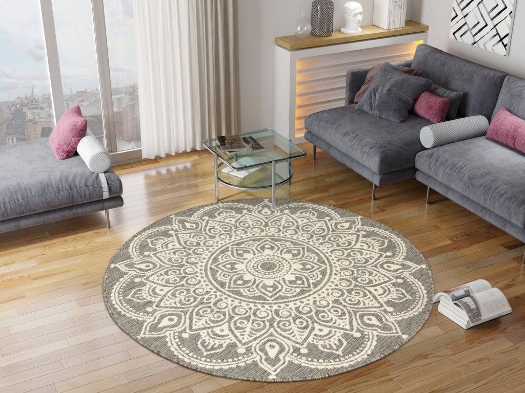 Kulatý sisalový koberec oboustranný Brussels 205333/10010 stříbrný šedý