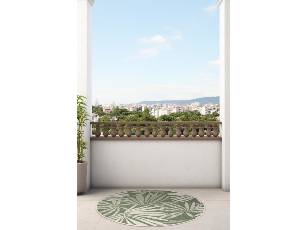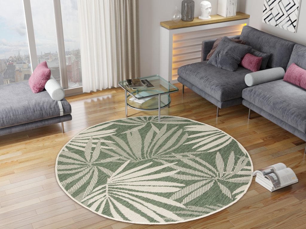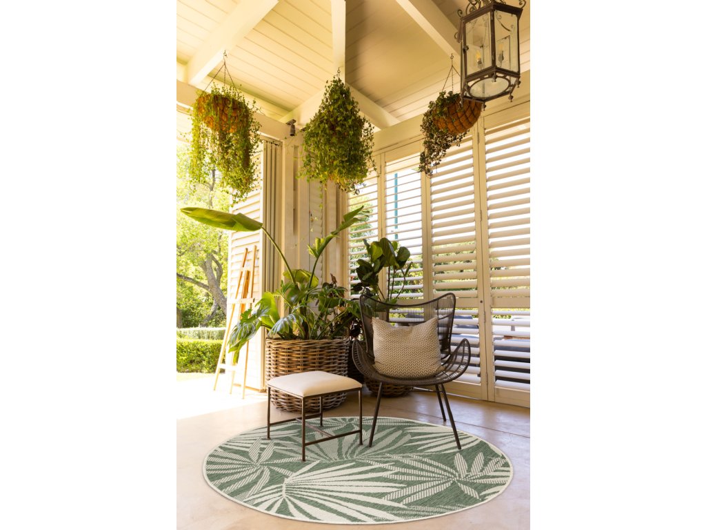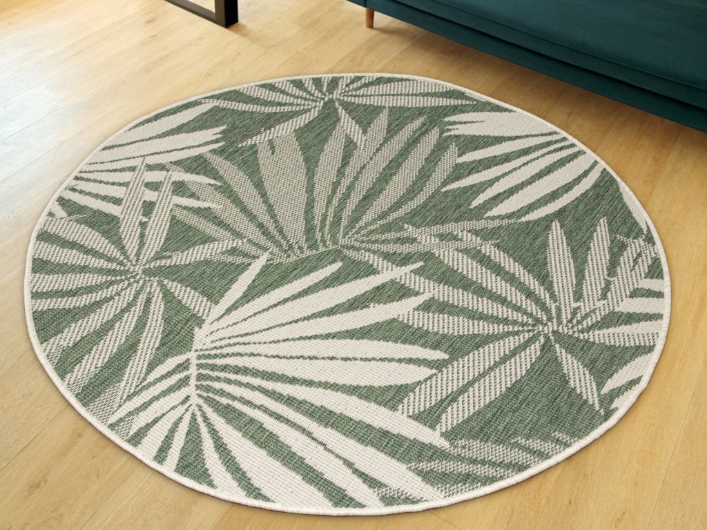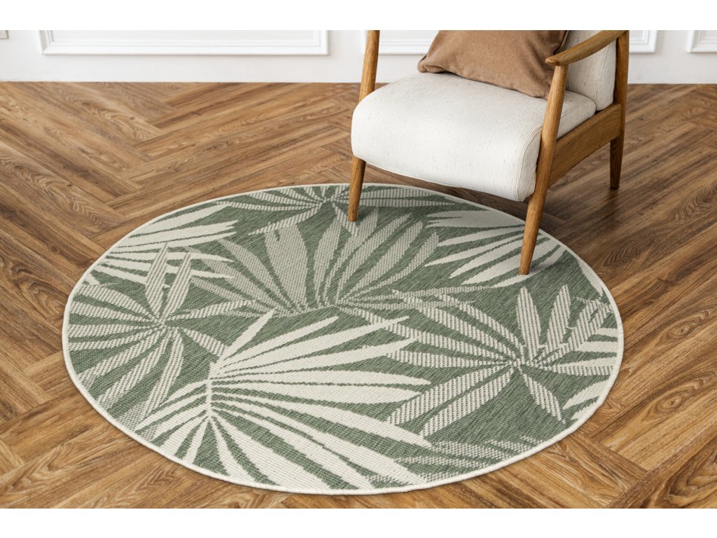 Kulatý sisalový koberec oboustranný Brussels 205771/10520 Listy Palmy zelený krémový