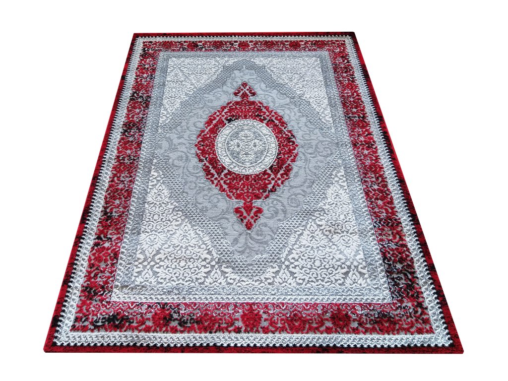 Kusový klasický koberec Angora 01 Luxusní červený šedý béžovýKolekce luxusních kusových koberců Angora je vyrobena z kvalitní příze polypropylénové a polyesterové. Tato kombinace dává kobercům jen ty nejlepší vlastnosti. Tyto koberce jsou vyrobeny v klasických vzorech v příjemných kombinacích barvách, šedé, modré, béžové, černé. Koberce mají jutový podklad a tak doporučujeme pro lepší stabilitu doporučujeme přikoupit protiskluzovou podložku.