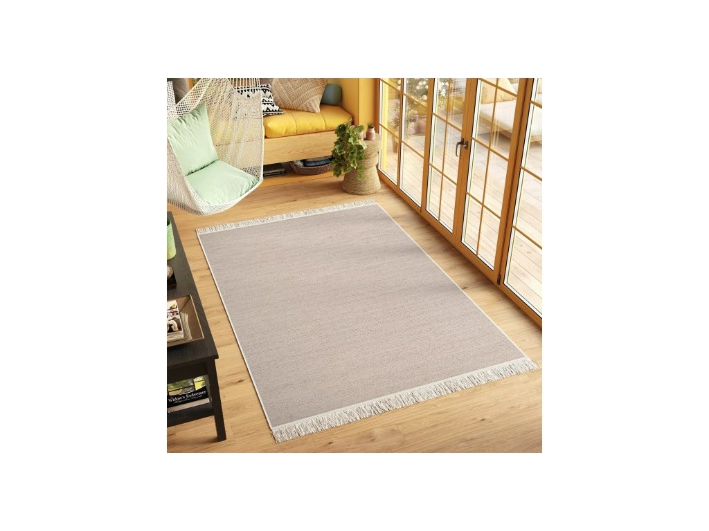 Kusový koberec bavlněný oboustranný AZTECA 2702 béžový s třásněmi