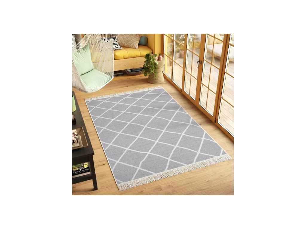 Kusový koberec bavlněný oboustranný AZTECA 2703 šedý s třásněmi