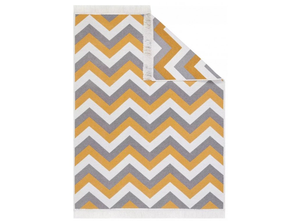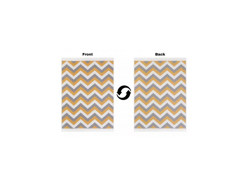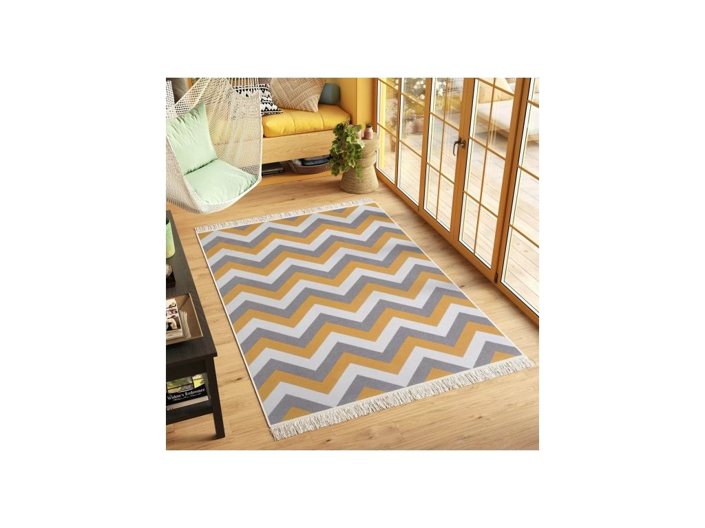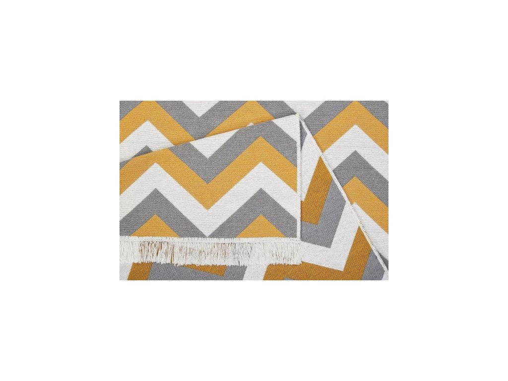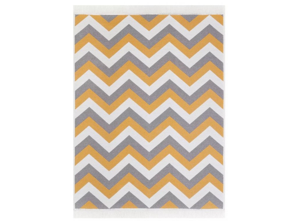 Kusový koberec bavlněný oboustranný AZTECA 2705 žlutý šedý krémový s třásněmi