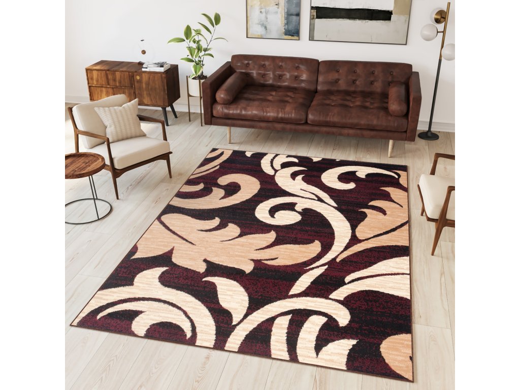 Kusový koberec CHEAP 2715B Listí béžový hnědý bordó černý