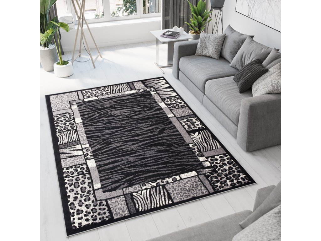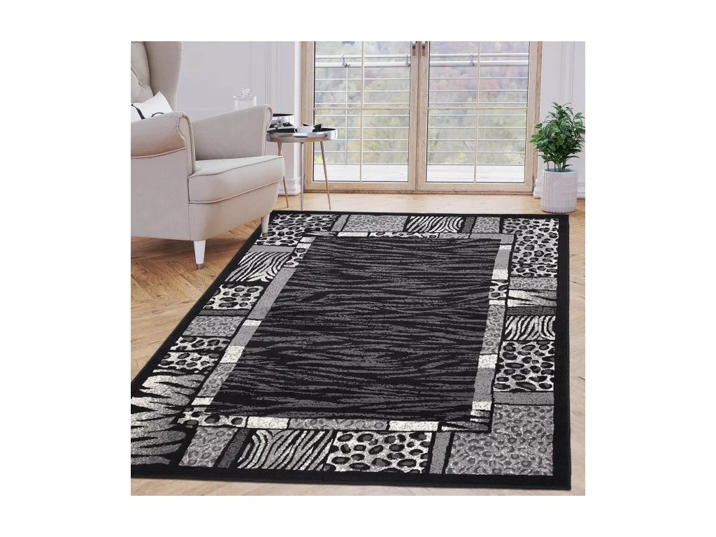 Kusový koberec J316B CHEAP Černý.Kolekce levných koberců CHEAP je vyrobena z 100% polypropylénové příze s výškou vlasu 8 mm. Tyto koberce se vyznačují především vysokou odolností proti otěru, jejich vlákna jsou elastická a odolná proti deformaci. Koberce se snadno čistí včetně vysávání a mokrého mytí šamponem. Mají také vysoký koeficient tepelné vodivosti, takže je lze použít v místnostech s podlahovým vytápěním. Kolekce levných koberců zahrnuje širokou škálu klasických i moderních vzorů, včetně geometrických, květinových, perských a nabízíme je v různých velikostech.