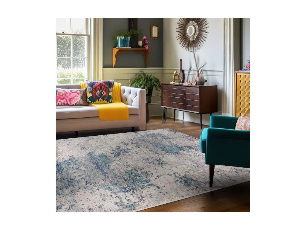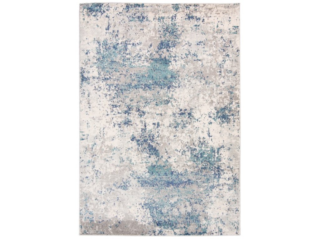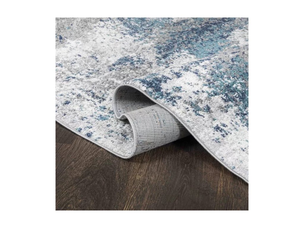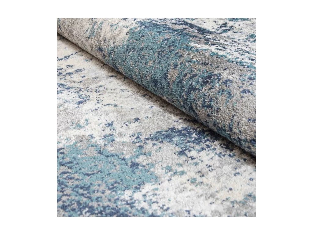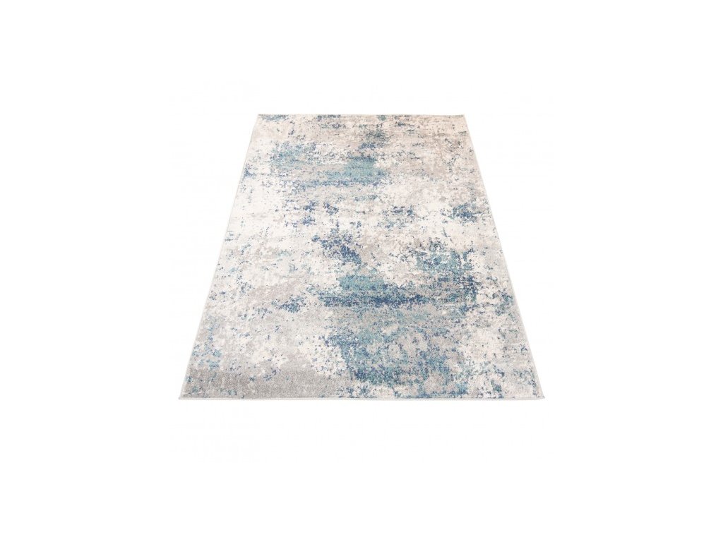 Kusový koberec DENVER G029A Abstraktní moderní modrý bílýKoberce Lazur jsou měkké a příjemné na dotek díky použití speciální polypropylenové příze Calping Frize. Vytvářejí hustý vlas o výšce 8 milimetrů a průměrné gramáži 1 400 g/m2.