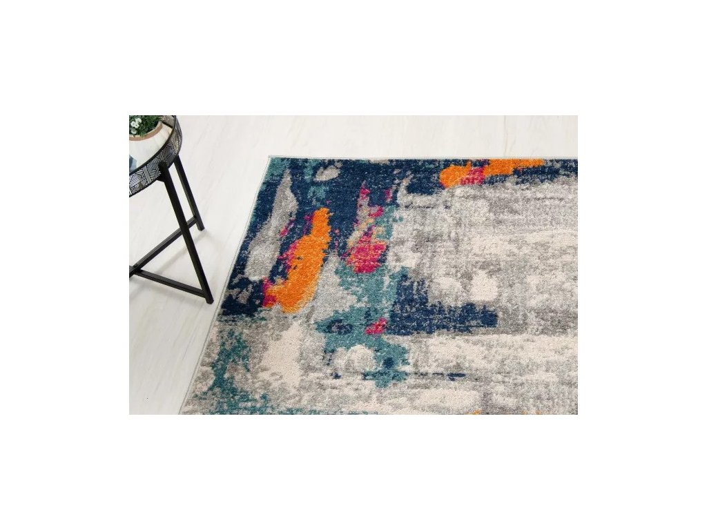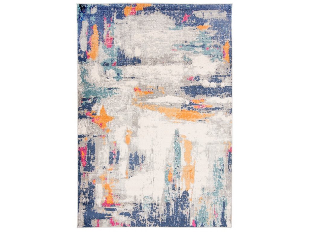 Kusový koberec DENVER G039A Abstraktní moderní modrý vícebarevnýKoberce Lazur jsou měkké a příjemné na dotek díky použití speciální polypropylenové příze Calping Frize. Vytvářejí hustý vlas o výšce 8 milimetrů a průměrné gramáži 1 400 g/m2.