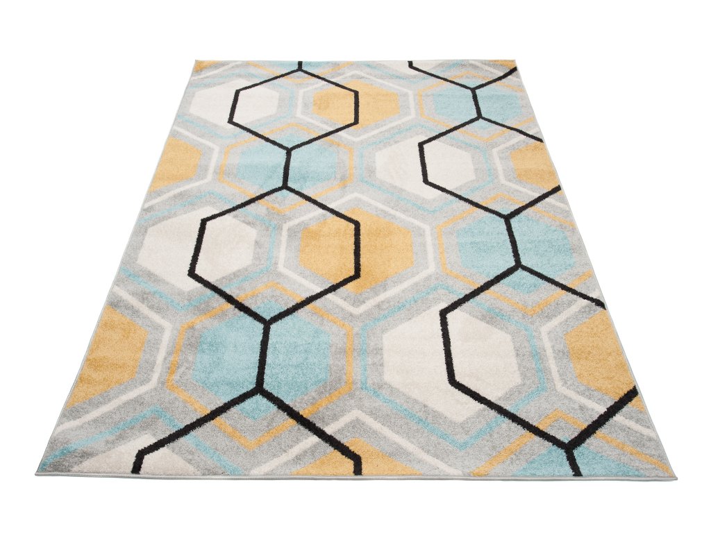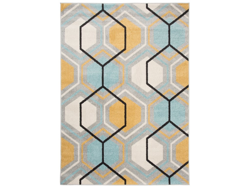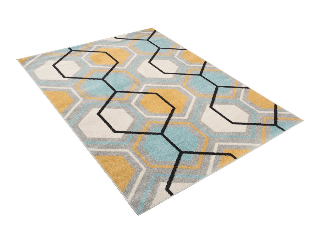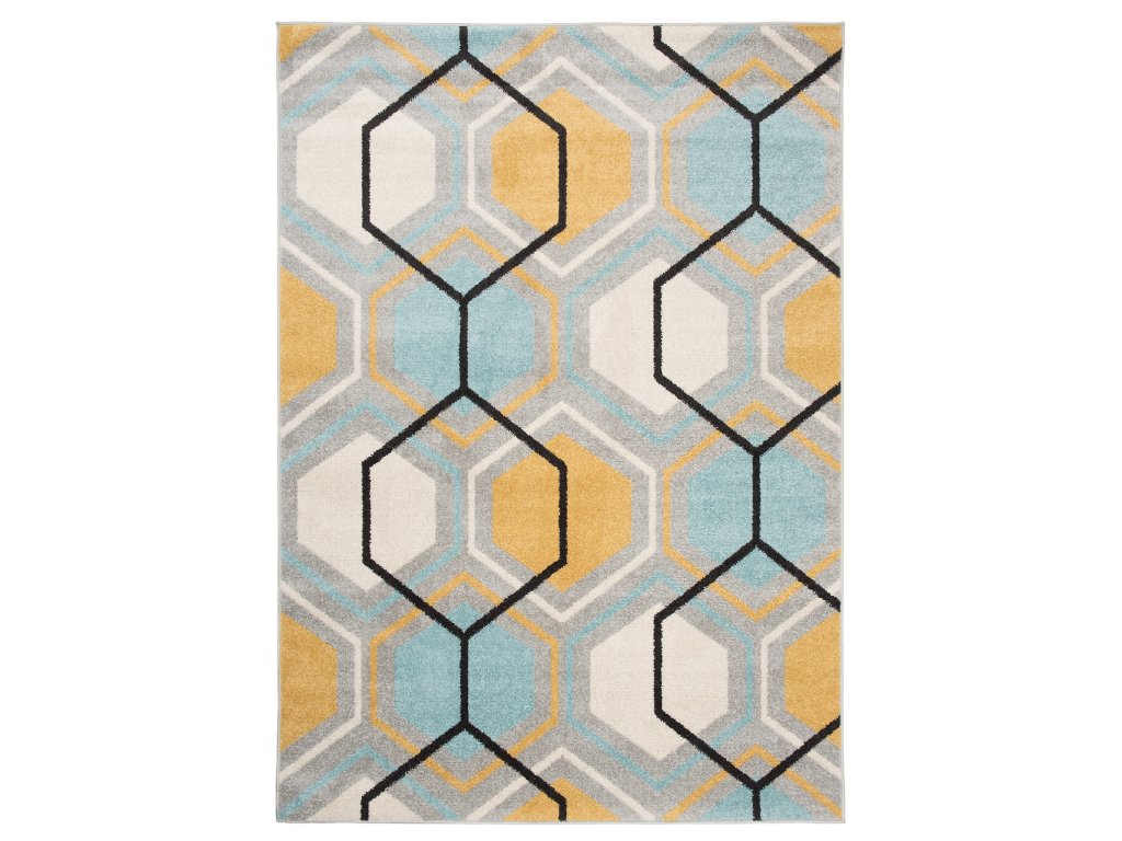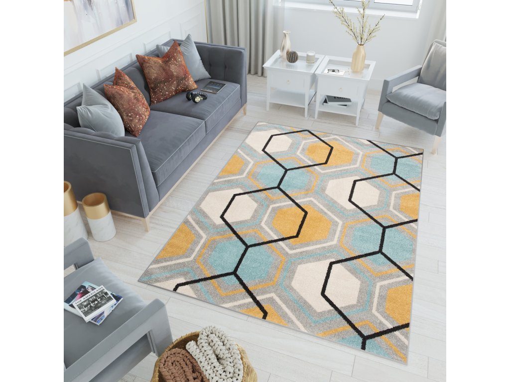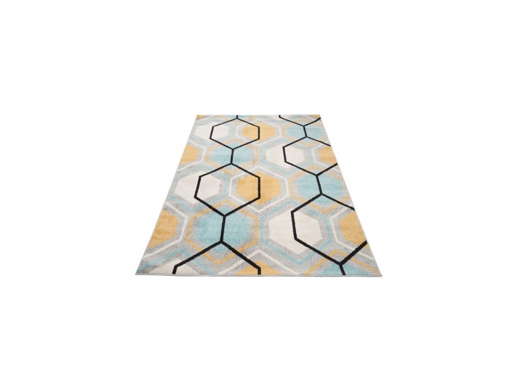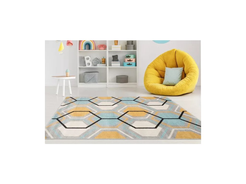 Kusový koberec LAZUR C569B šedý modrý žlutý