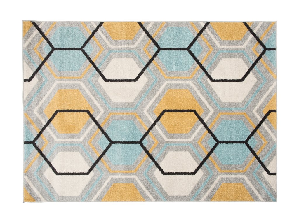 Kusový koberec LAZUR C569B šedý modrý žlutý.