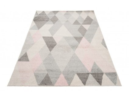 Kusový koberec LAZUR C944A trojúhelníky bílý růžový žlutý