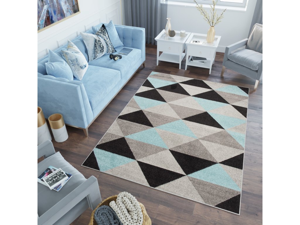 Kusový koberec LAZUR C945M šedý modrý s geometrickým vzorem