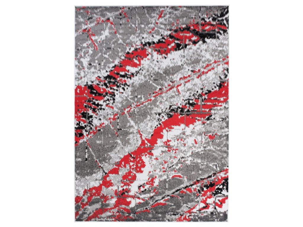 Kusový koberec moderní  MAYA Q543A šedý červený bílý s moderním abstraktním vzorem.