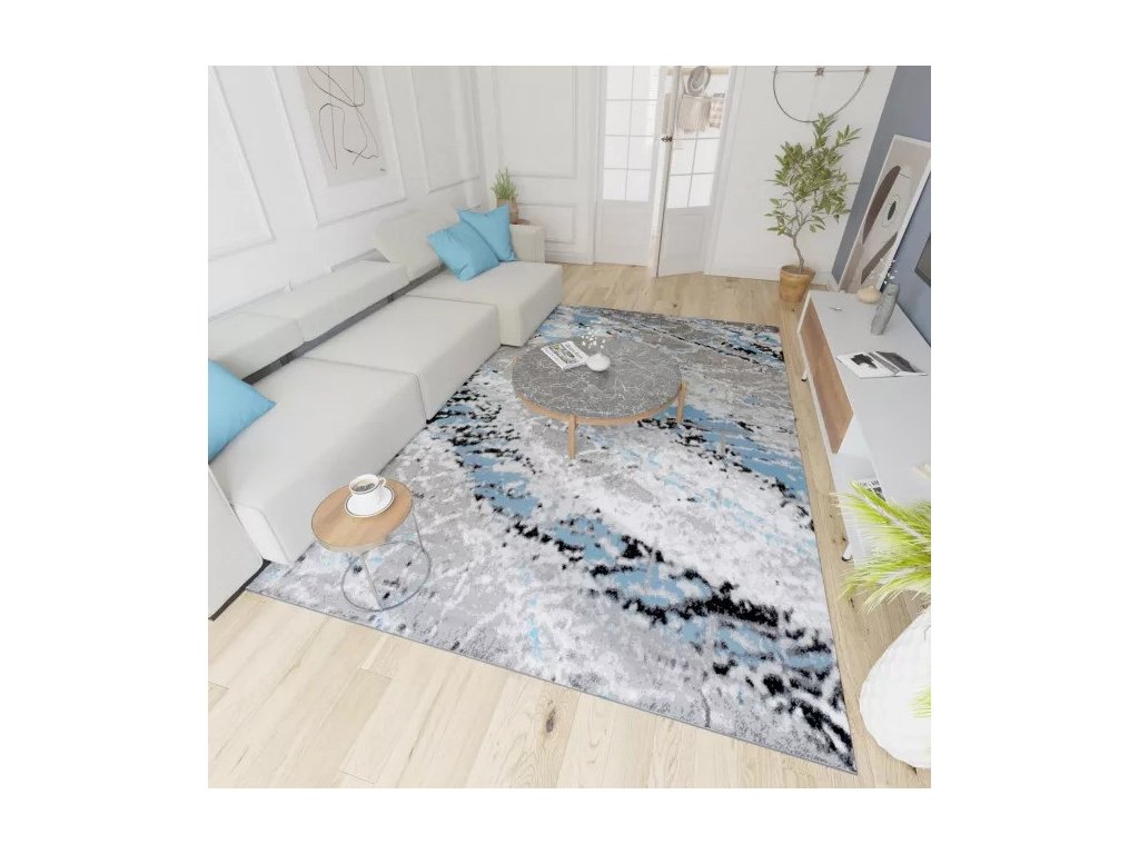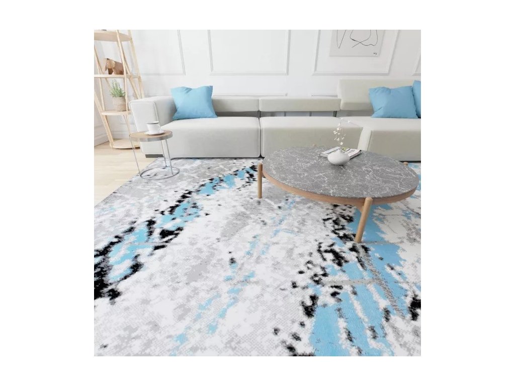 Kusový koberec moderní MAYA Q543C šedý modrý bílý s moderním abstraktním vzorem.Kolekce koberců a běhounů MAYA je vyrobená z velice kvalitní polypropylénové příze BCF, která má velice pružný a měkký vlas a je velice odolná proti ušpinění. Koberce stačí vysát a na větší nečistoty můžete použít šampón a vodu. Koberce s výškou vlasu 8 mm a váhou 1,35 kg/m2. Koberce jsou antistatické a vhodné k podlahovému topení. Tato kolekce nabízí širokou škálu vzoru jako abstraktní, moderní, geometrické, klasické. Tyto koberce díky své rozmanitosti vzorů a barevných kombinací najdou místo v každém interiéru. V této kolekci najdeme i běhouny.