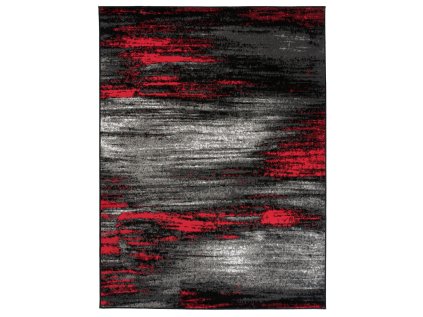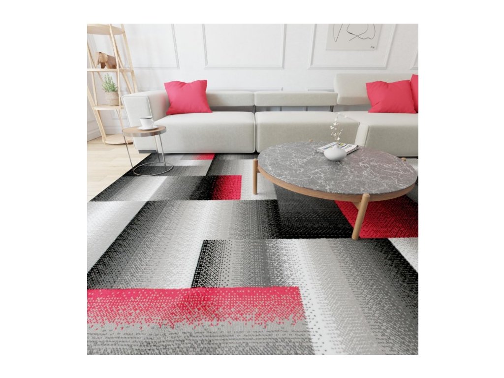 Kusový koberec moderní MAYA Z904E šedý červený s moderním geometrickým vzorem.