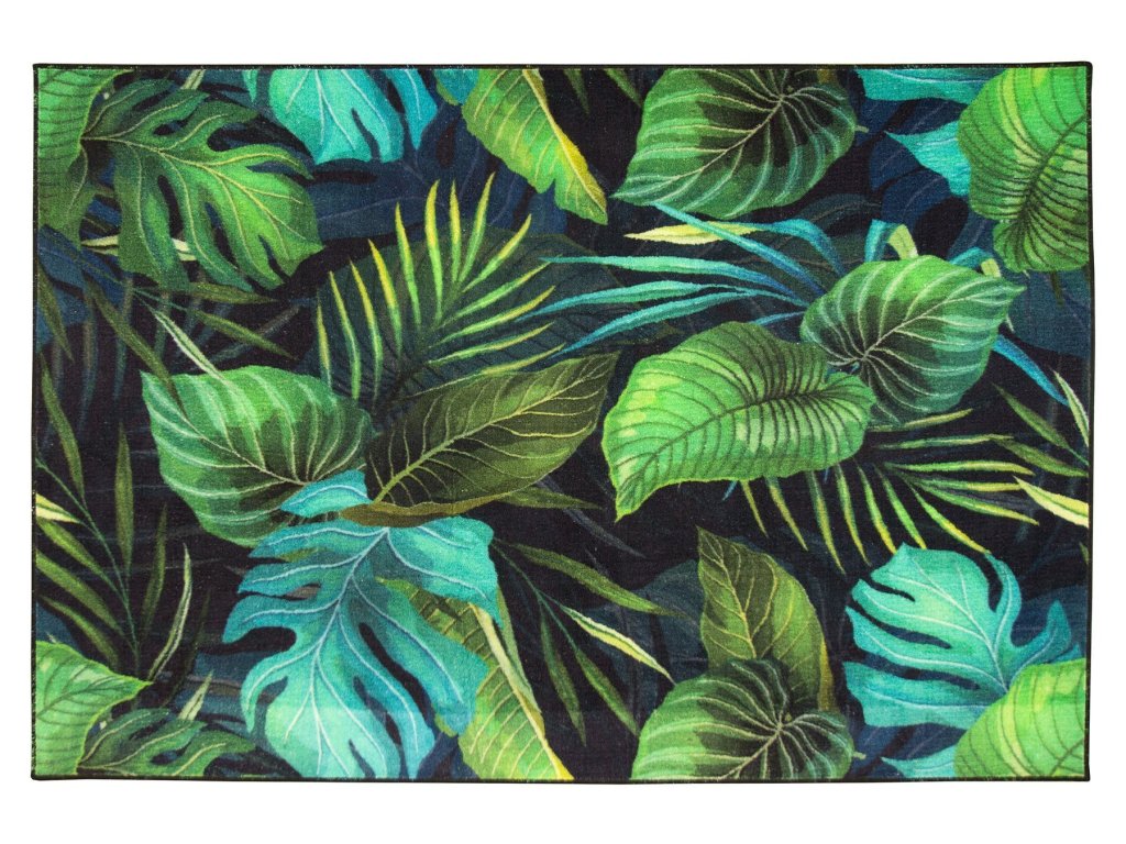 Moderní kusový koberec Monstera s dekorem listí palem je velmi příjemný a na dotek měkký koberec. Koberec je vyrobený z polyesterové příze celková výška koberce je 7 mm a podklad má filcový. Koberec je vhodný k podlahovému topení a má vysokou odolnost barev proti slunečnímu svitu. Tento koberec nabízíme taky v kulatém provedení a nejdete jej i jako běhoun.