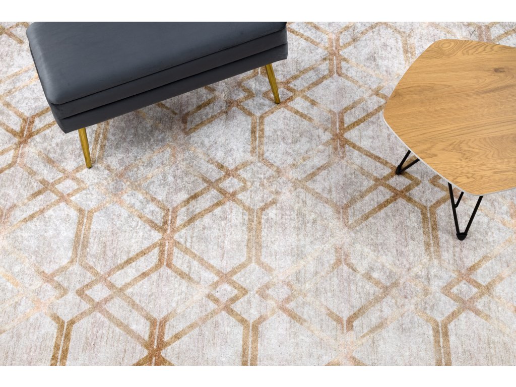 Kusový koberec pratelný MIRO 51805.804 Geometrický protiskluzový krémový zlatý