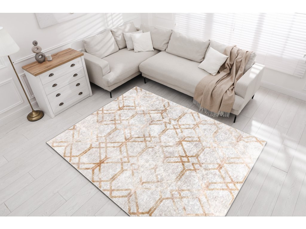 Kusový koberec pratelný MIRO 51805.804 Geometrický protiskluzový krémový žlutý