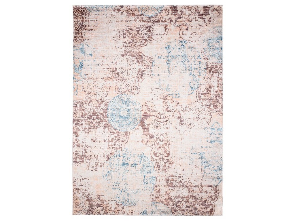 Kusový koberec pratelný TOSCANA 43850 Moderní pogumovaný krémový hnědý modrýKolekce pratelných koberců TOSCANA jsou utkány z kvalitní polyesterové příze. Výška vlasu 6 mm zaručuje, že se koberce velmi dobře udržují v čistotě a pogumovaný podklad dodá kobercům na stabilitě. Koberce Toscana nabízí vzory klasické, moderní, geometrické, abstraktní ve spoustě barevných kombinací Tyto koberce budou příjemným doplňkem každého interiéru.