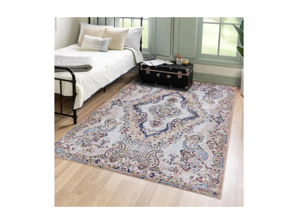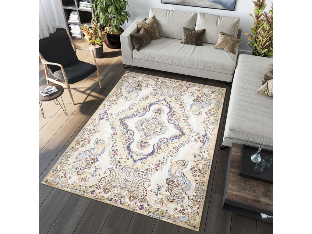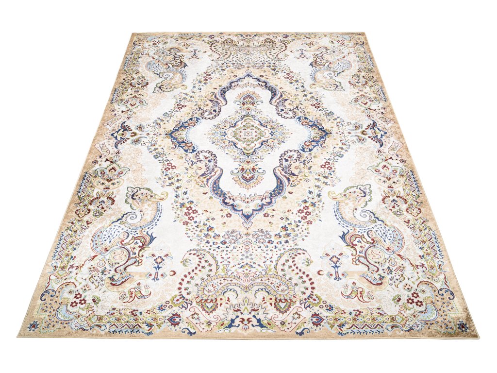 Kusový koberec pratelný VICTORIA 42420 Klasický pogumovaný krémový modrý