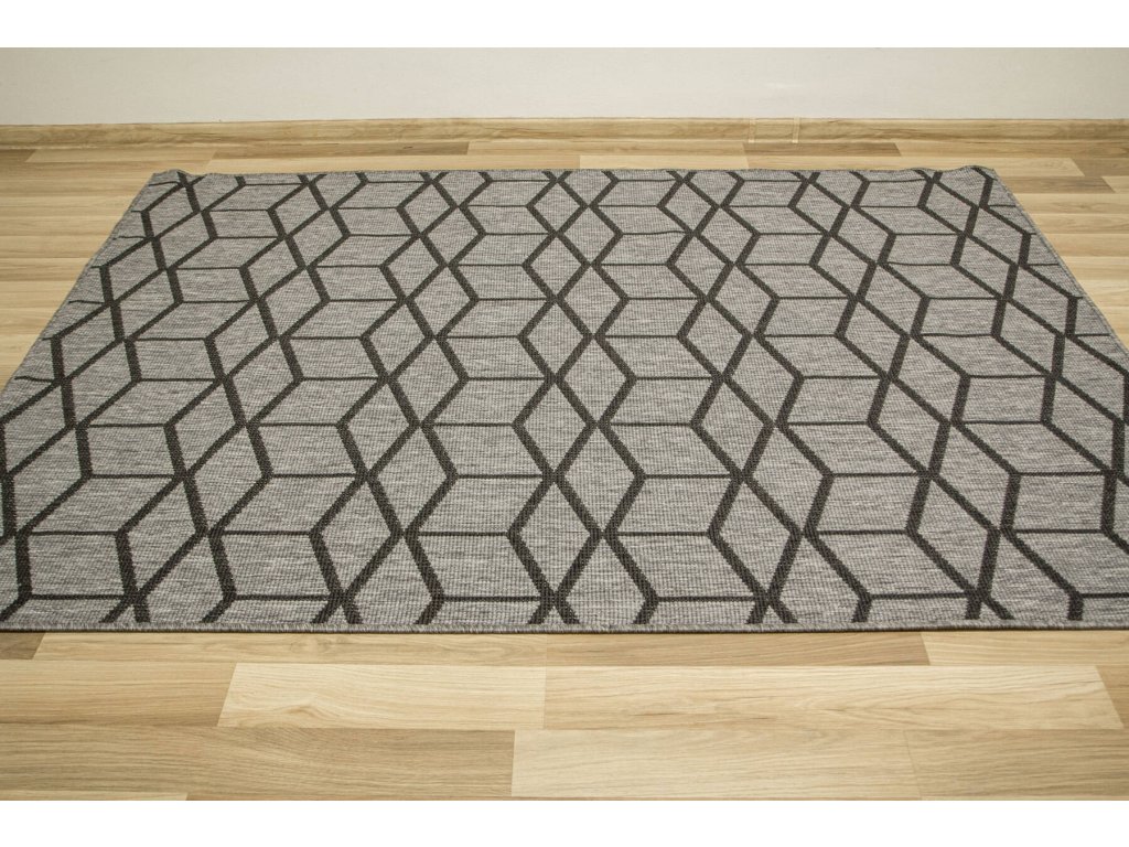 Kusový koberec sysalový oboustranný Brussels 205178/11020 Geometrický 3D antracitový šedý