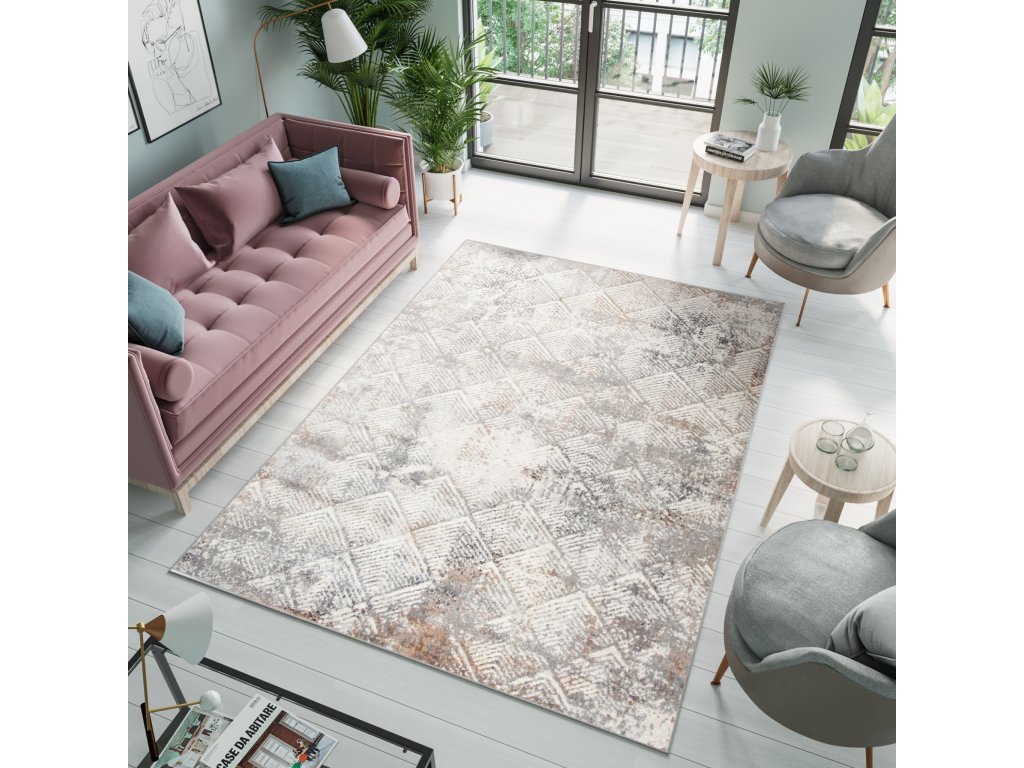Kusový koberec VALLEY D166A Moderní Geometrický světle šedý krémový