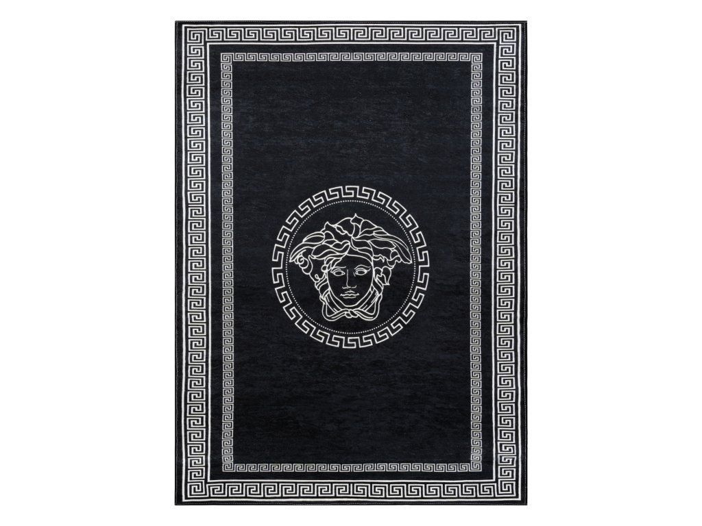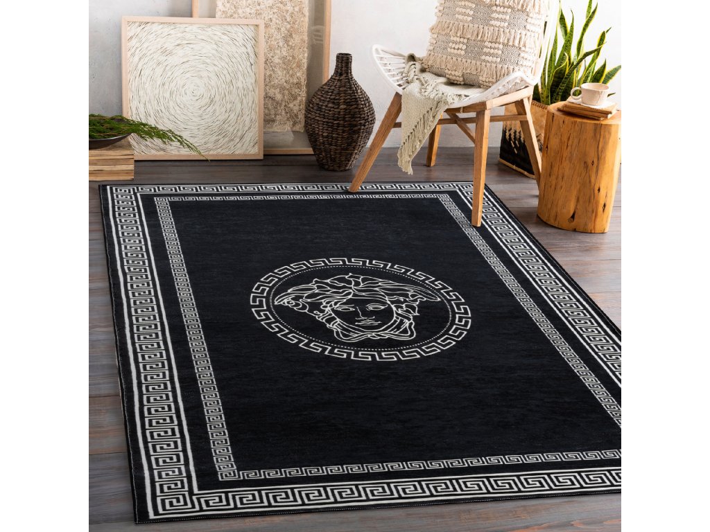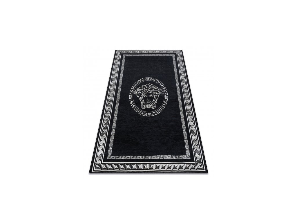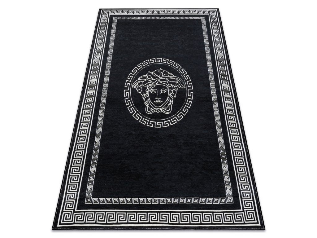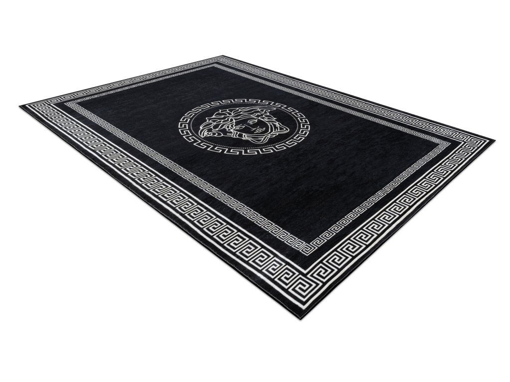 Kusový koberec vhodný k praní ANDRE 2031 Řecký vzor protiskluzový černý bílý