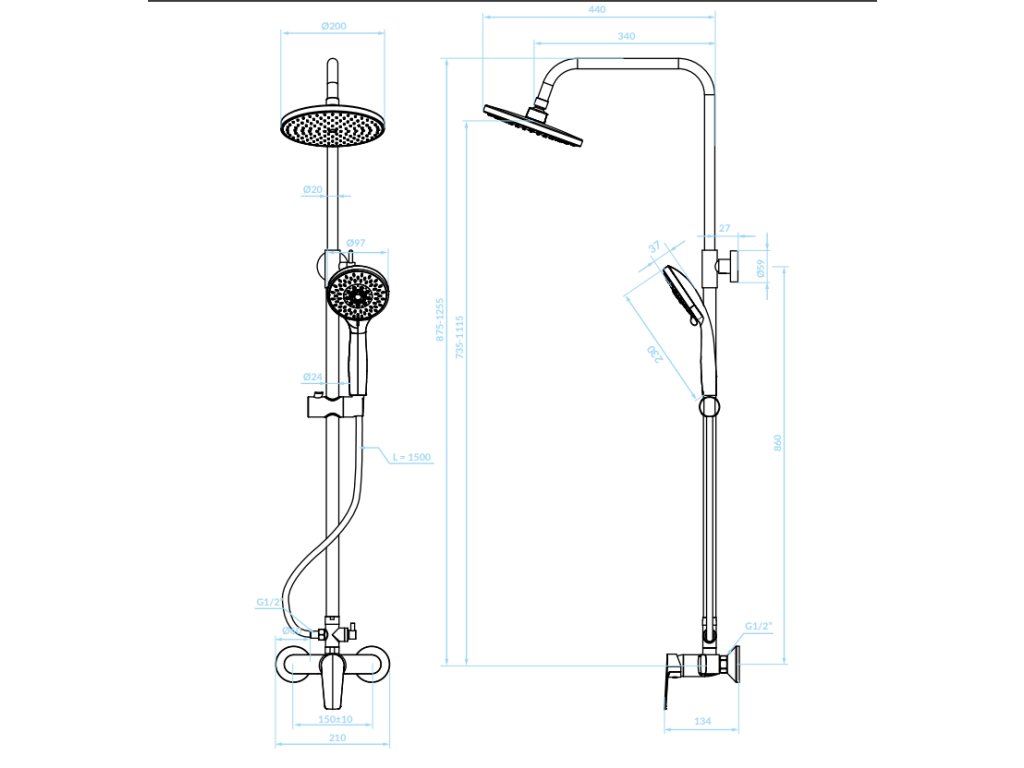 Sloup má nastavitelnou horní sprchovou hlavici, takže sprchu lze snadno přizpůsobit výšce všech uživatelů.