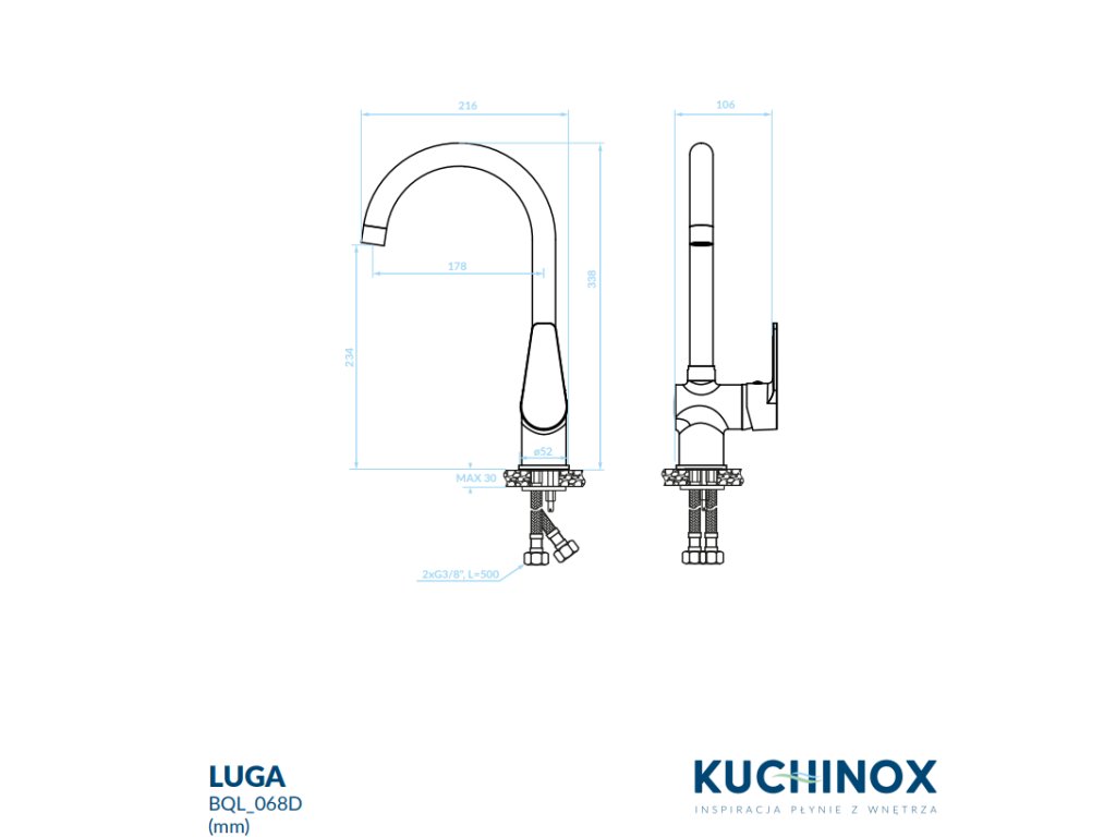LUGA je jednou z nejrozmanitějších sérií od KUCHINOX, která zahrnuje jak nástěnné, tak i volně stojící modely.