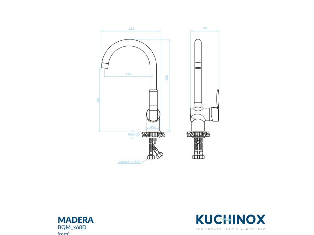 Béžová baterie Madera s volně stojící instalací se vyznačuje elegantním, minimalistickým designem, který dokonale ladí s moderními dřezy s jednoduchými geometrickými tvary. Perfektně se hodí k dřezům z žuly, nerezové oceli nebo keramiky v barvách jako grafit, šedá, antracit, a také k bílým dřezům, se kterými vytváří efektní kontrast. Díky kompaktnímu tvaru bude baterie skvěle fungovat jak na jednodřezových dřezech v menších kuchyních, tak i na větších dvoudřezových modelech v prostorných interiérech.