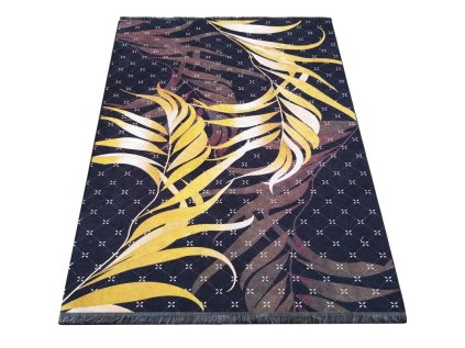 Moderní kusový koberec BLACK and GOLD 01 Listí protiskluzový černý zlatý