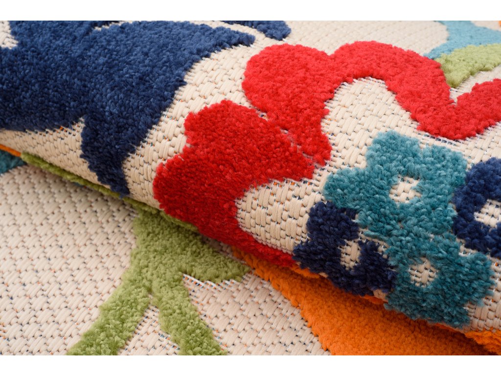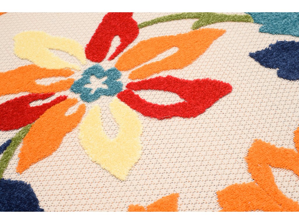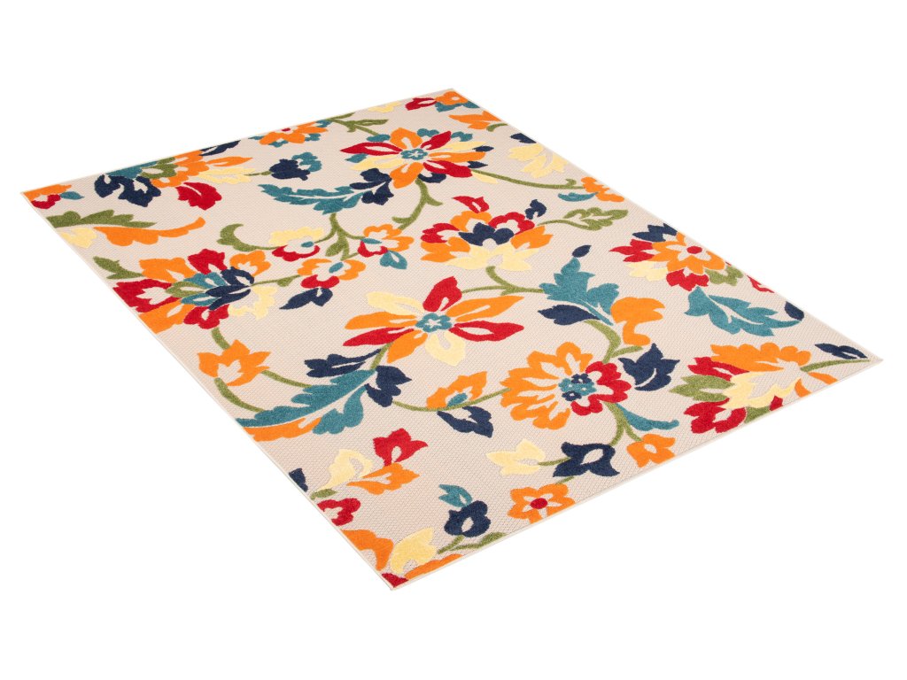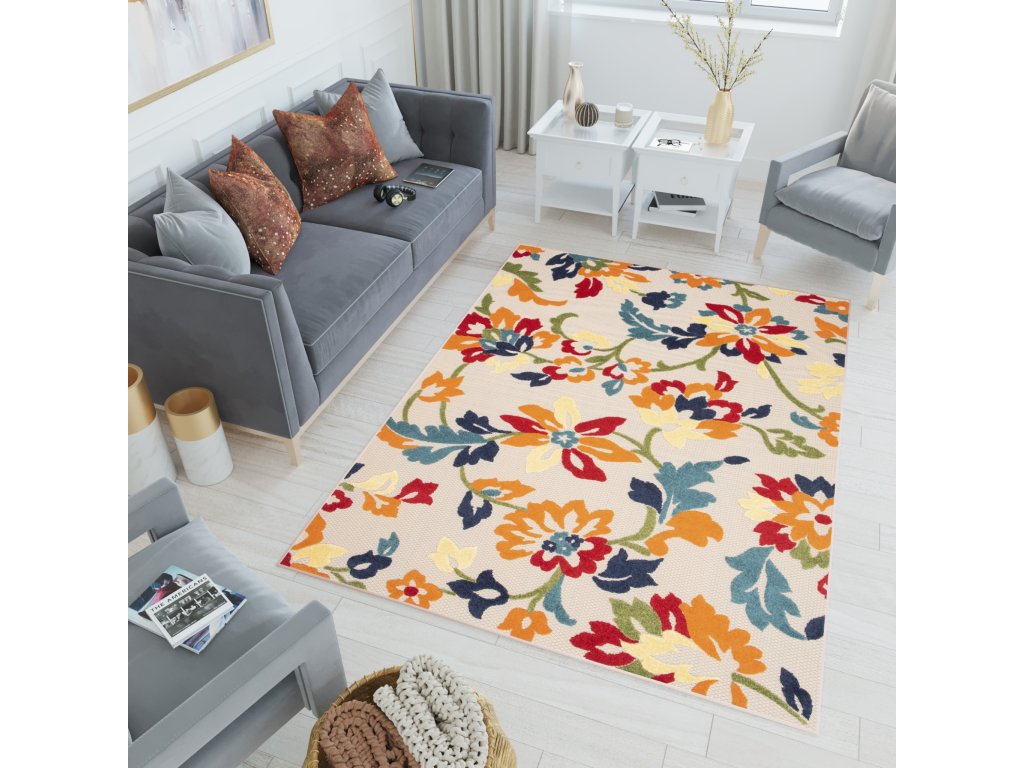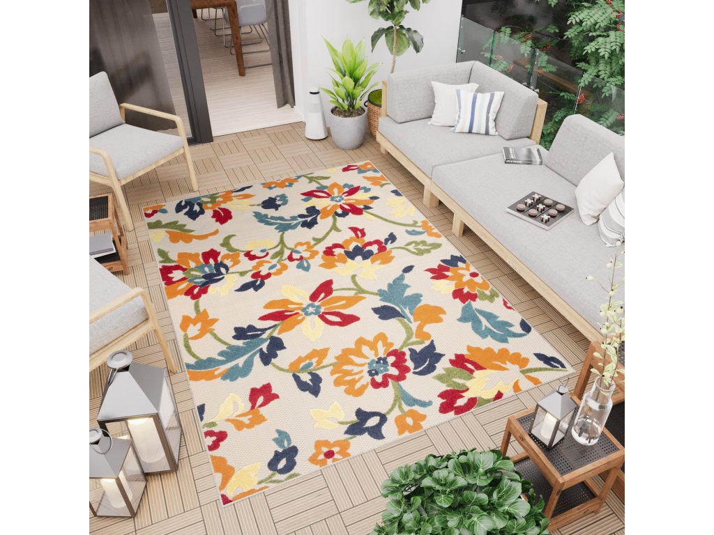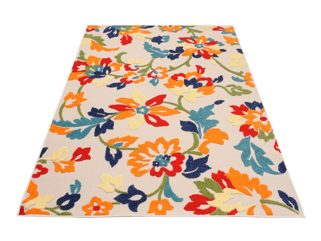 Moderní kusový koberec AVENTURA EC94A Květy vícebarevný pro venkovní a vnitřní využití zůtulní Váš byt.