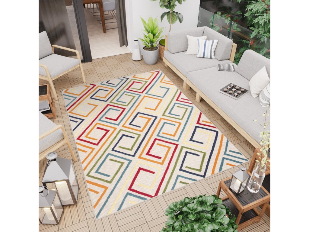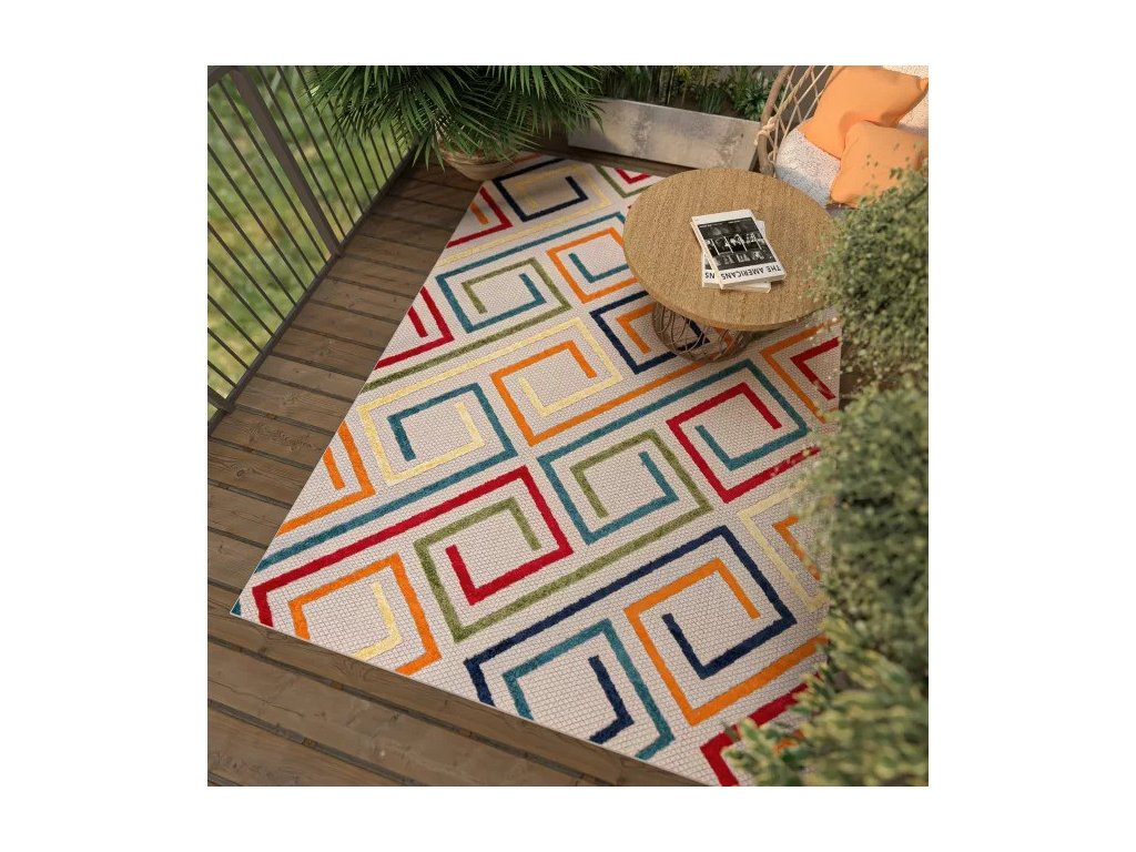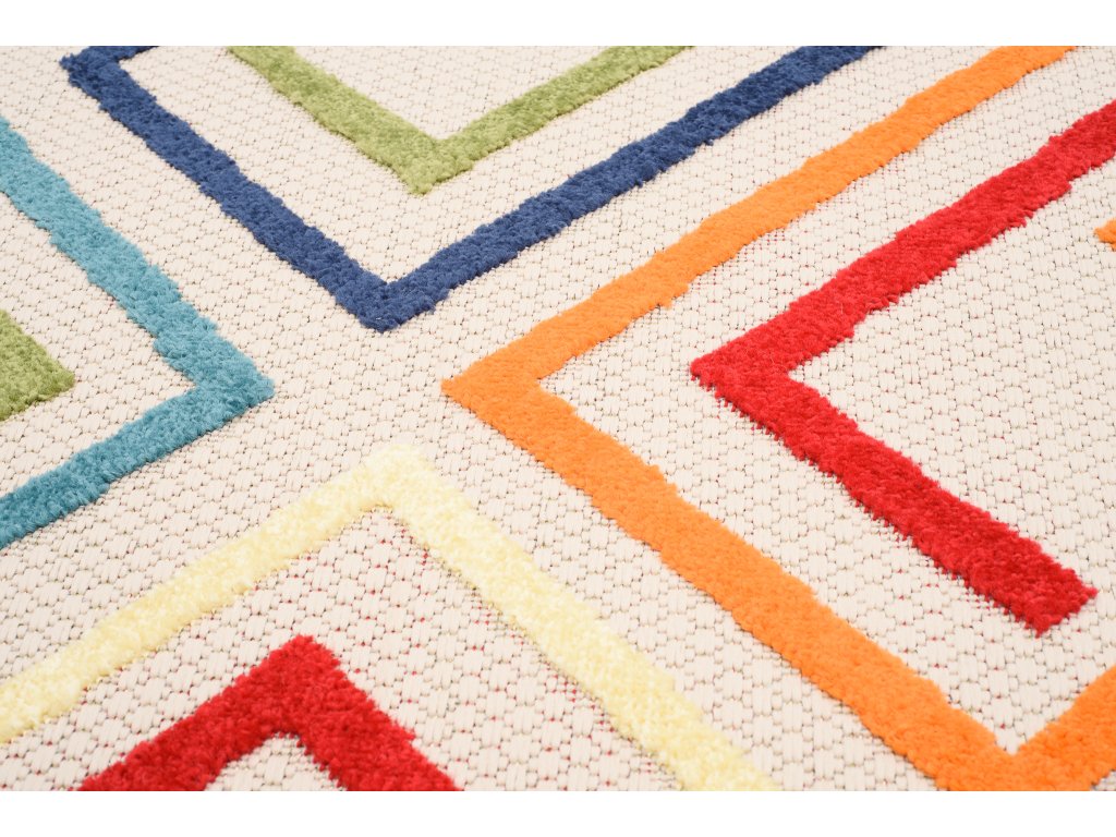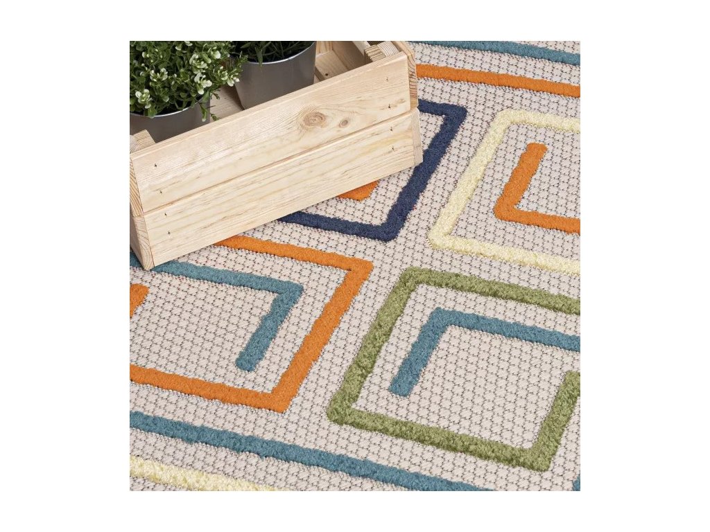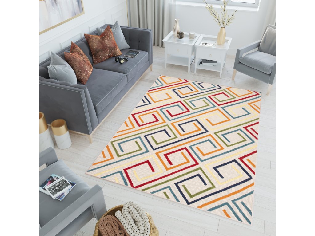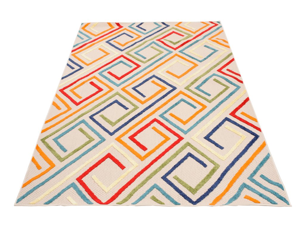 Moderní kusový koberec AVENTURA EC95A vícebarevný s geometrickým vzorem.