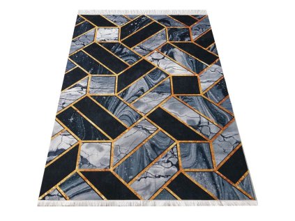 Moderní kusový koberec BLACK and GOLD N 12 Abstraktní Geometrický černý zlatýDesignový koberec z kolekce Black and Gold je vyroben ze 100% polyesteru s důrazem na ten nejmenší detail. Vysoce kvalitní materiály, které byly použity při jeho výrobě, zaručují odolnost vůči deformacím, zabarvení a oděru. Černozlatý koberec Black and Gold, dodá interiéru punc elegance a charakteru. Protiskluzový podklad, který byl vyroben z bavlny, vám umožní cítit se bezpečně a v pohodě při každodenním používání - dokonale přilne k zemi, díky čemuž zabráníme pohybu koberce. Jednou z mnoha výhod tohoto produktu je možnost mokrého čištění. Koberec lze jednoduše vyprat v pračce na 30 stupňů. Koberce jsou zakončeny třásněmi.