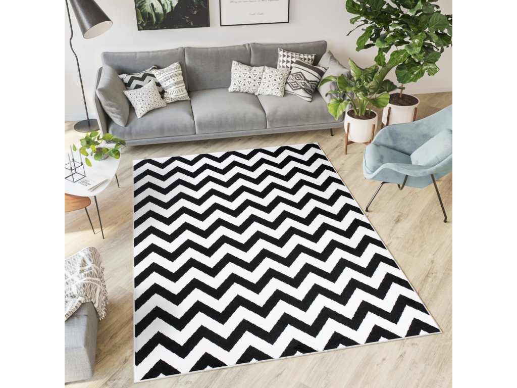 Moderní kusový koberec CHEAP T238B černý bílý