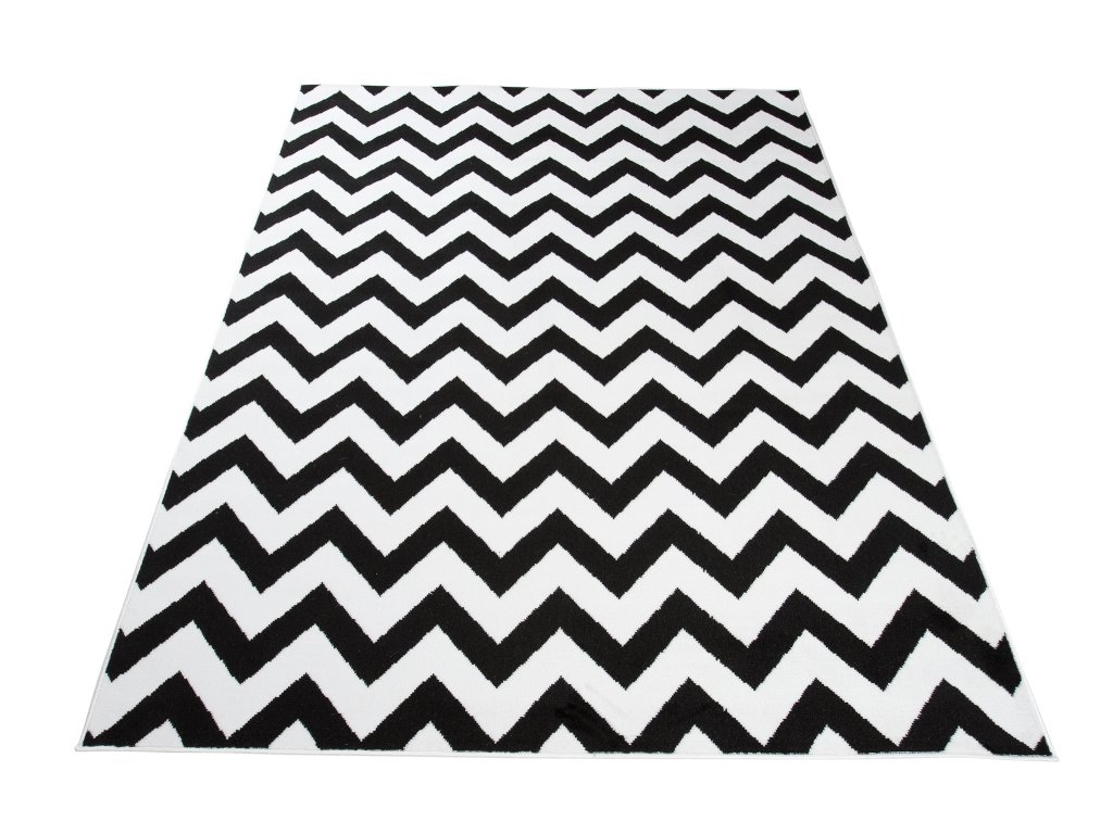 Moderní kusový koberec CHEAP T238B černý bílý.Kolekce levných koberců a běhounů CHEAP je vyrobena z 100% polypropylénové příze s výškou vlasu 8 mm. Tyto koberce se vyznačují především vysokou odolností proti otěru, jejich vlákna jsou elastická a odolná proti deformaci. Koberce se snadno čistí včetně vysávání a mokrého mytí šamponem. Mají také vysoký koeficient tepelné vodivosti, takže je lze použít v místnostech s podlahovým vytápěním. Kolekce levných koberců zahrnuje širokou škálu klasických i moderních vzorů, včetně geometrických, květinových, perských a nabízíme je v různých velikostech.