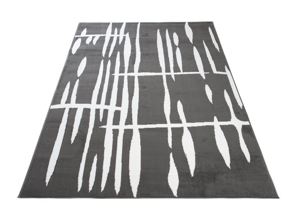 Moderní kusový koberec CHEAP T967A tmavě šedý bílý.Kolekce levných koberců a běhounů CHEAP je vyrobena z 100% polypropylénové příze s výškou vlasu 8 mm. Tyto koberce se vyznačují především vysokou odolností proti otěru, jejich vlákna jsou elastická a odolná proti deformaci. Koberce se snadno čistí včetně vysávání a mokrého mytí šamponem. Mají také vysoký koeficient tepelné vodivosti, takže je lze použít v místnostech s podlahovým vytápěním. Kolekce levných koberců zahrnuje širokou škálu klasických i moderních vzorů, včetně geometrických, květinových, perských a nabízíme je v různých velikostech.