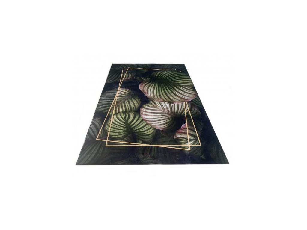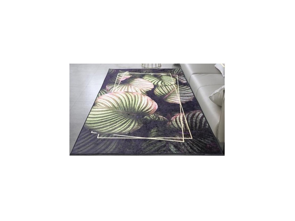 Moderní kusový koberec FLANNEL PRINTED Y-A Listy Květy antracitový zelený