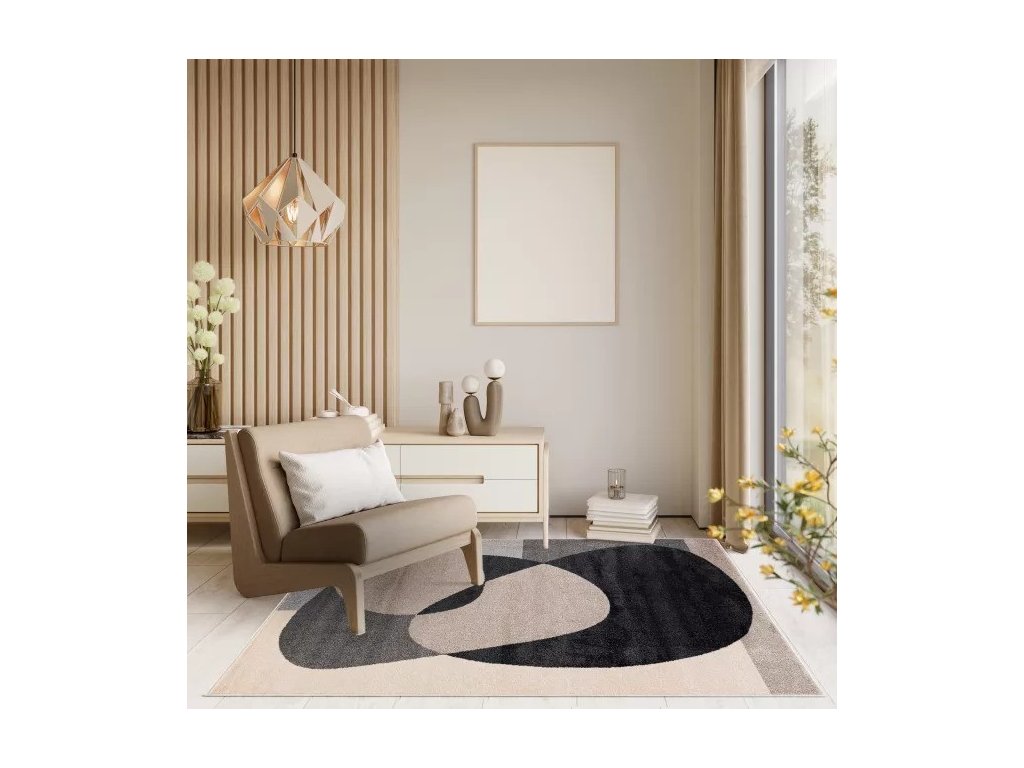 Moderní kusový koberec LUCY NP27B krémový šedý černý