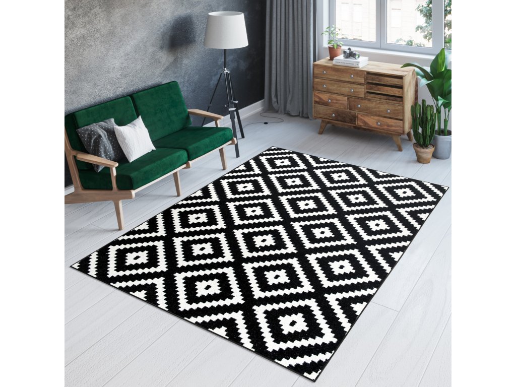 Moderní kusový koberec MAROKO L885A černý bílý.