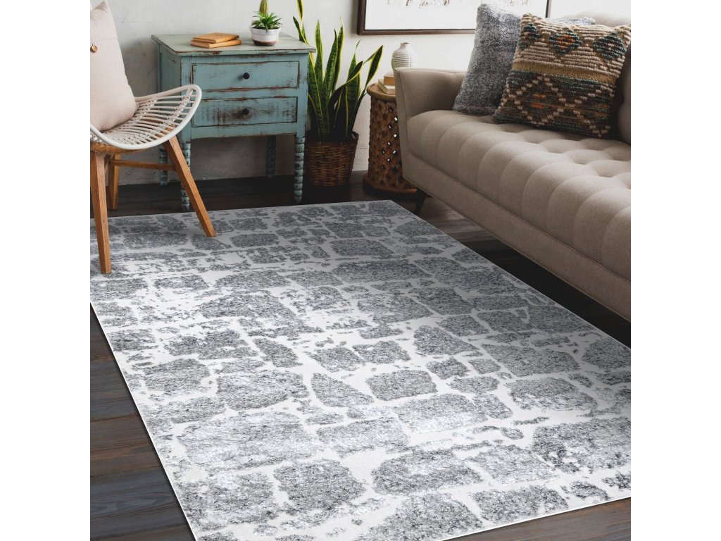 Moderní kusový koberec MEFE 6184 Kámen tmavě šedý se vzorem kamene.