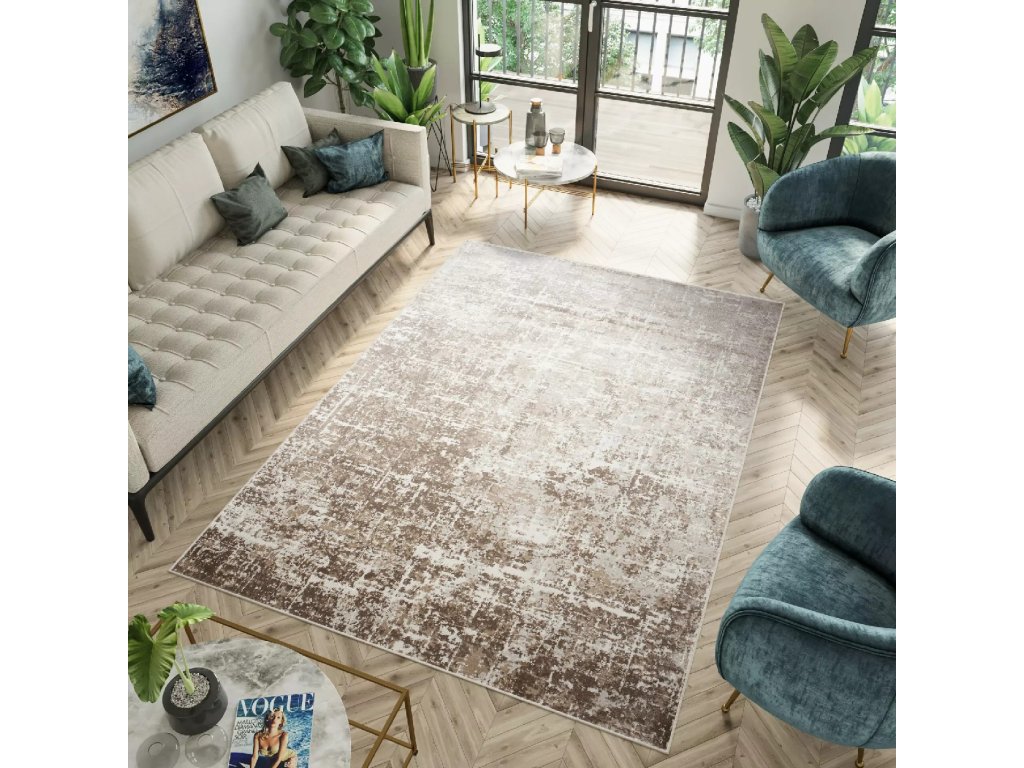 Moderní kusový koberec PORTLAND D072E Abstraktní bílý hnědý