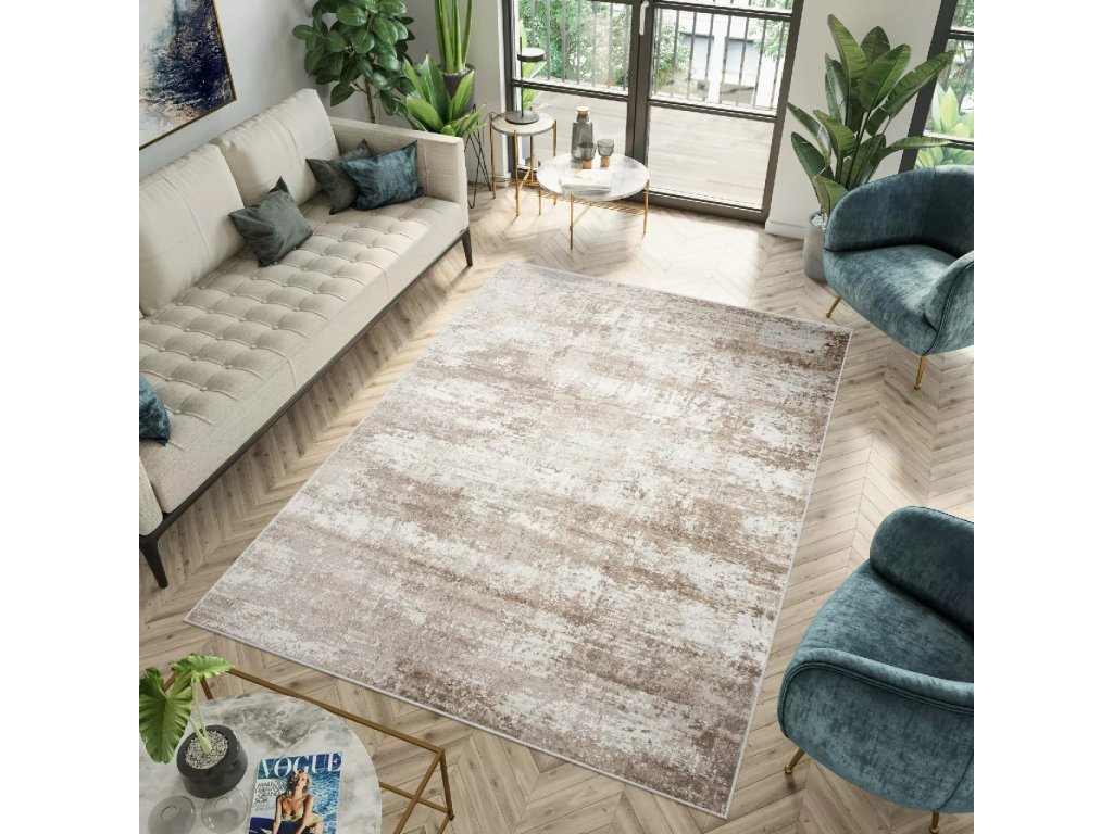 Moderní kusový koberec PORTLAND D163E hnědý bílý