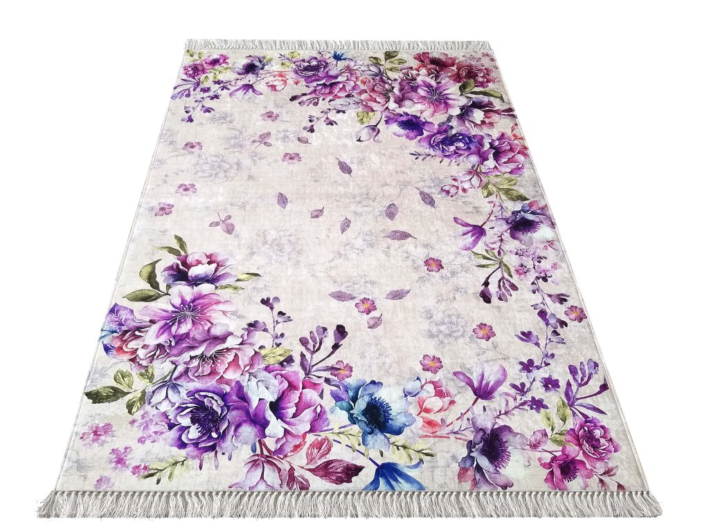 Moderní kusový koberec protiskluzový Horeca 03 Květy fialový krémový
