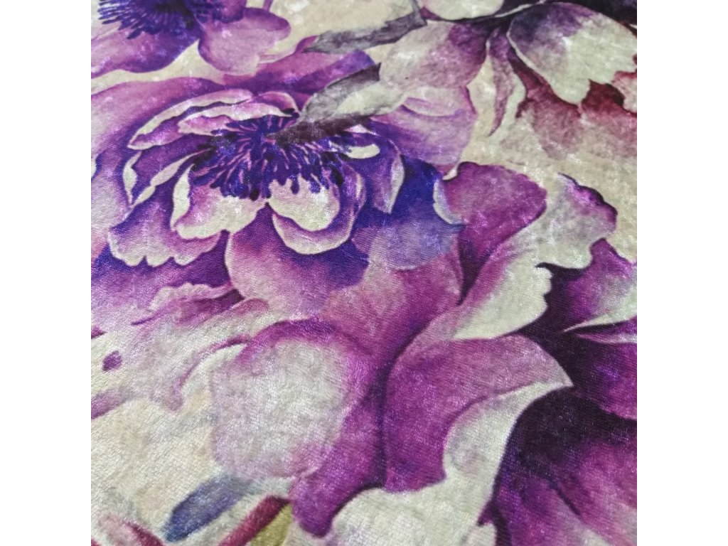 Moderní kusový koberec protiskluzový Horeca 03 Květy Fialový / krémový.