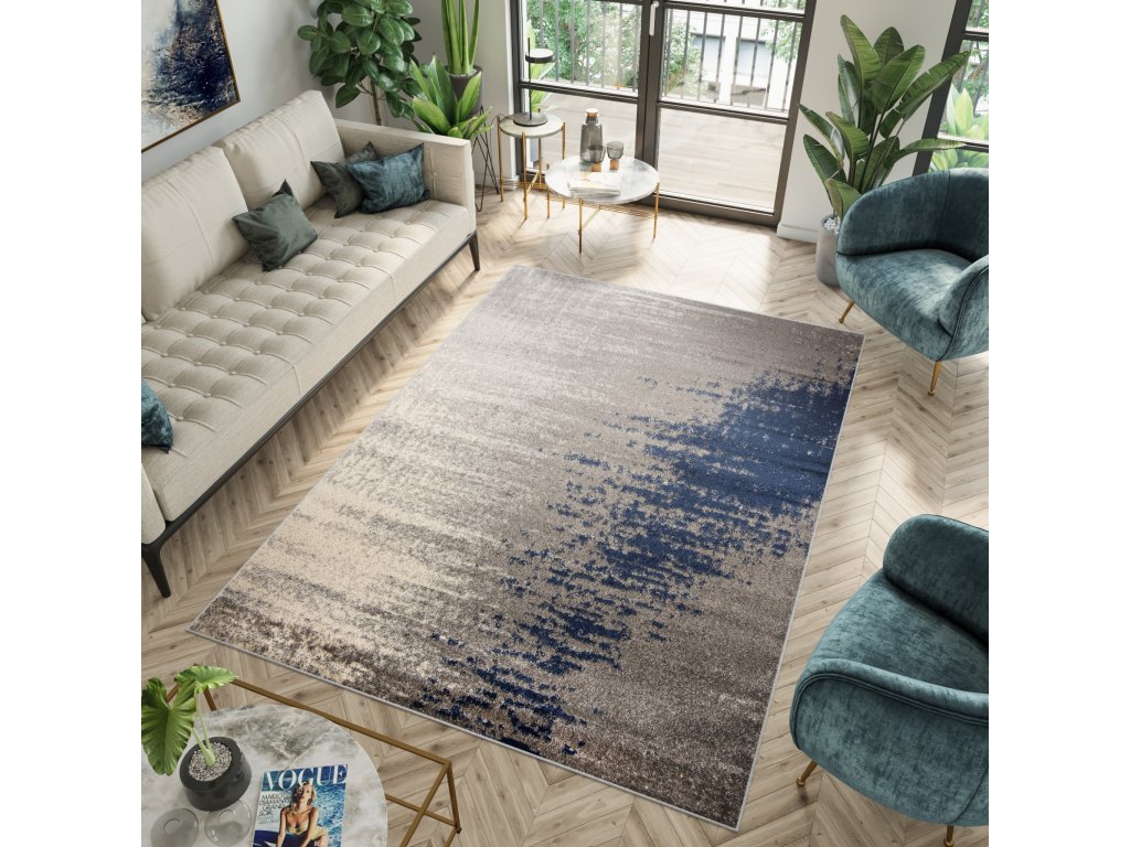 Moderní kusový koberec SPRING H170A Tmavě šedý, modrý s abstraktním vzorem.