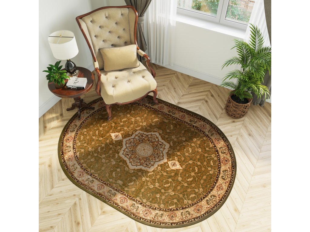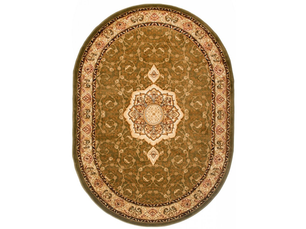 Oválný koberec YESEMEK 5071A LEMON zelený s klasickým designem.