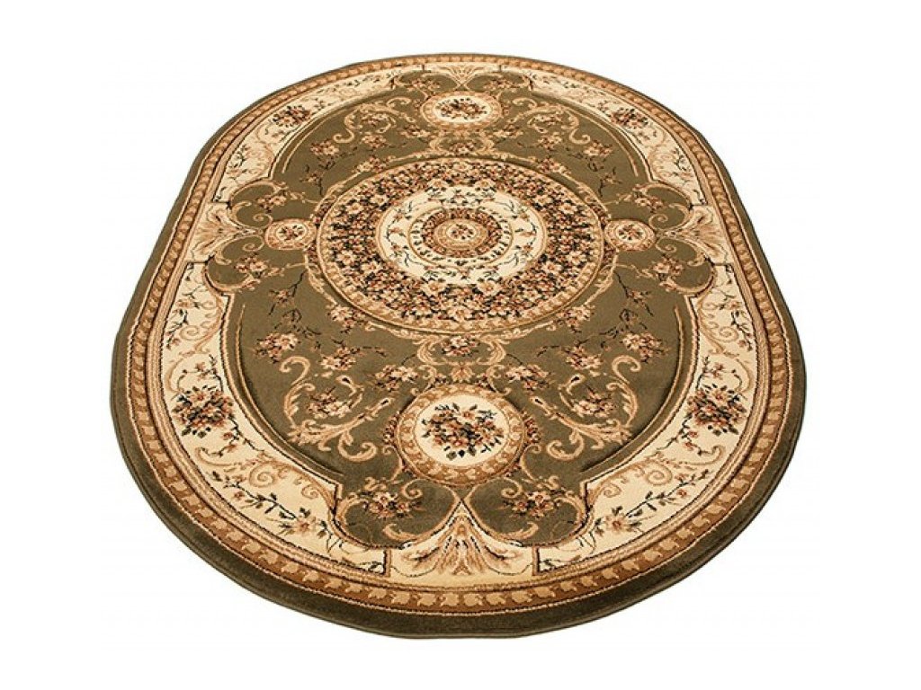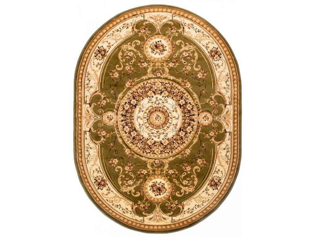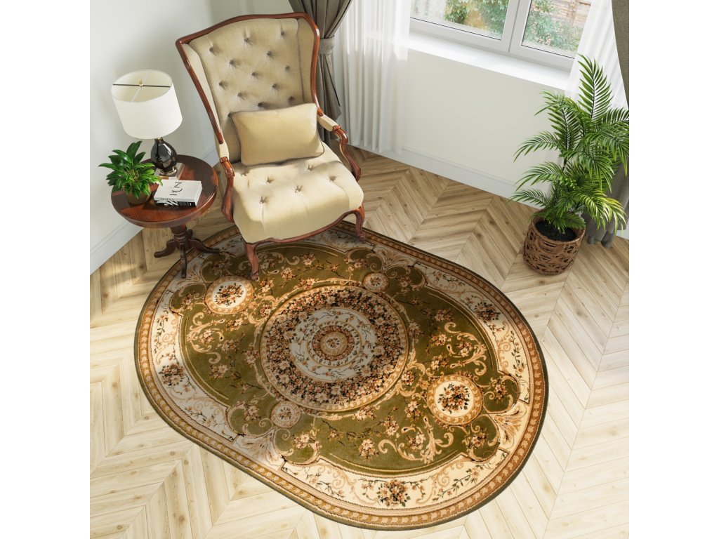 Oválný koberec YESEMEK 6548A zelený s klasickým vzorem.