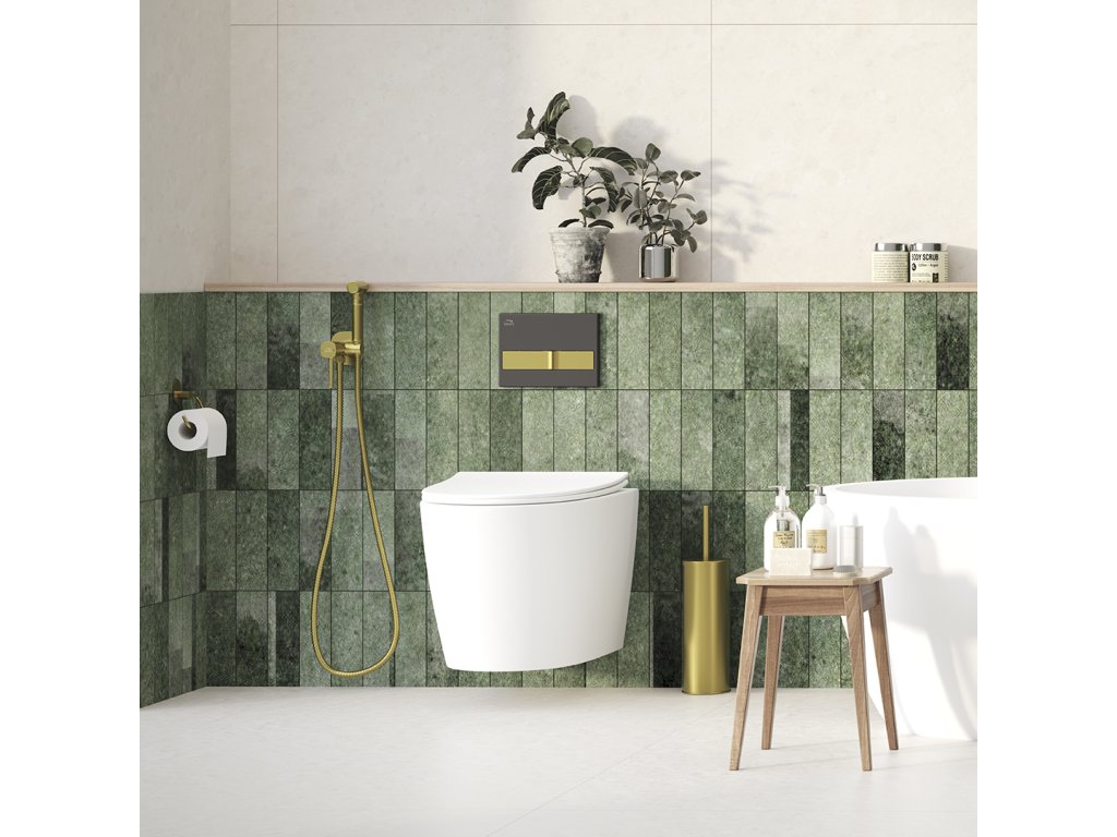 Obzvláště se doporučuje pro malé koupelny, kde se počítá každý centimetr a interiérové prvky by neměly být vizuálně ohromující. Série je k dispozici ve čtyřech povrchových úpravách: klasický chrom, extrémně módní černá, růžové zlato, zlato nebo kartáčované zlato.